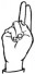 На ћирилици написано АНГЕЛИНА МИЛОШИЧЕВИЋ састоји се из 19 слова [?]. Исписано ћириличном једноручном азбуком за глувонеме: